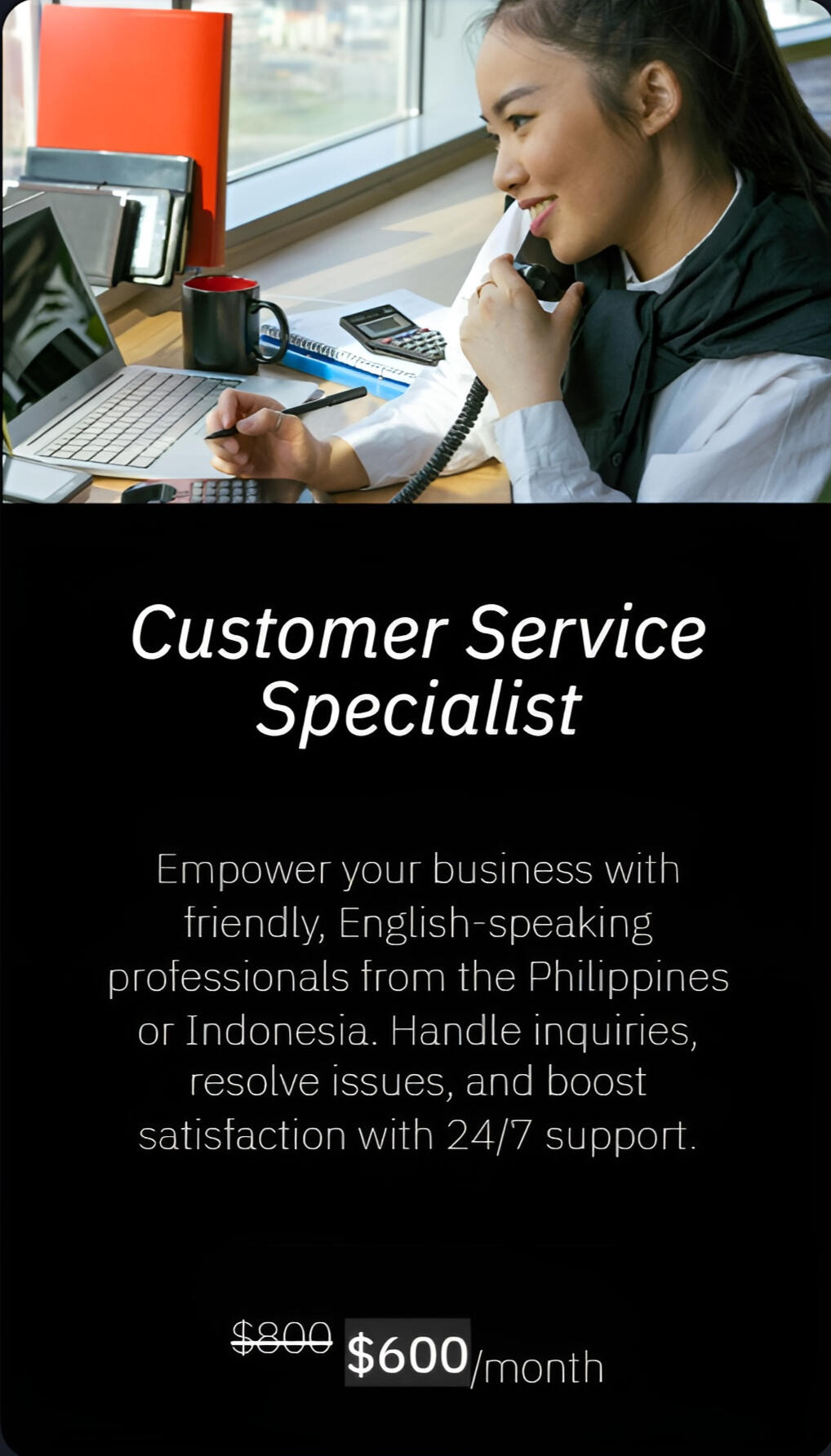 Choose monthly support or contact us for tailored one-time placement details. Sign a 3-year contract for any monthly role and get 25% off the listed price.